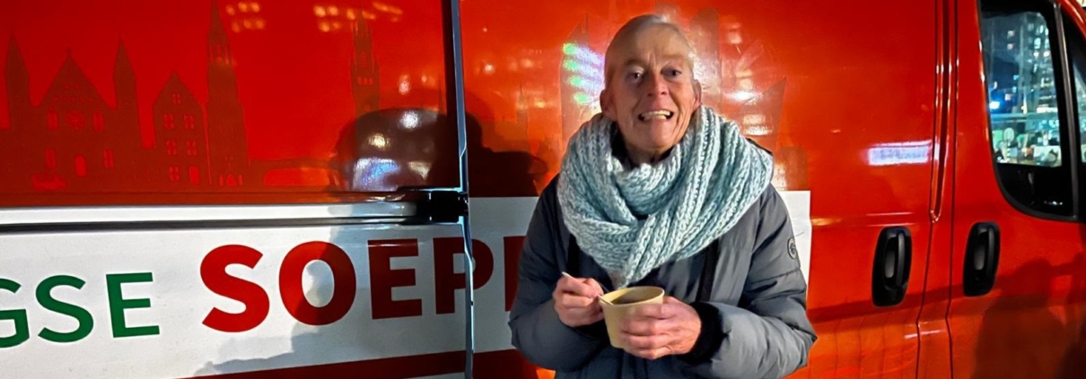 De Stichting De Haagse Soepbus is er elke dag om op een verantwoorde en duurzame manier alle mensen in Den Haag, die dit nodig hebben of er behoefte aan hebben, te voorzien van koffie, brood, soep, menselijk begrip en een luisterend oor.